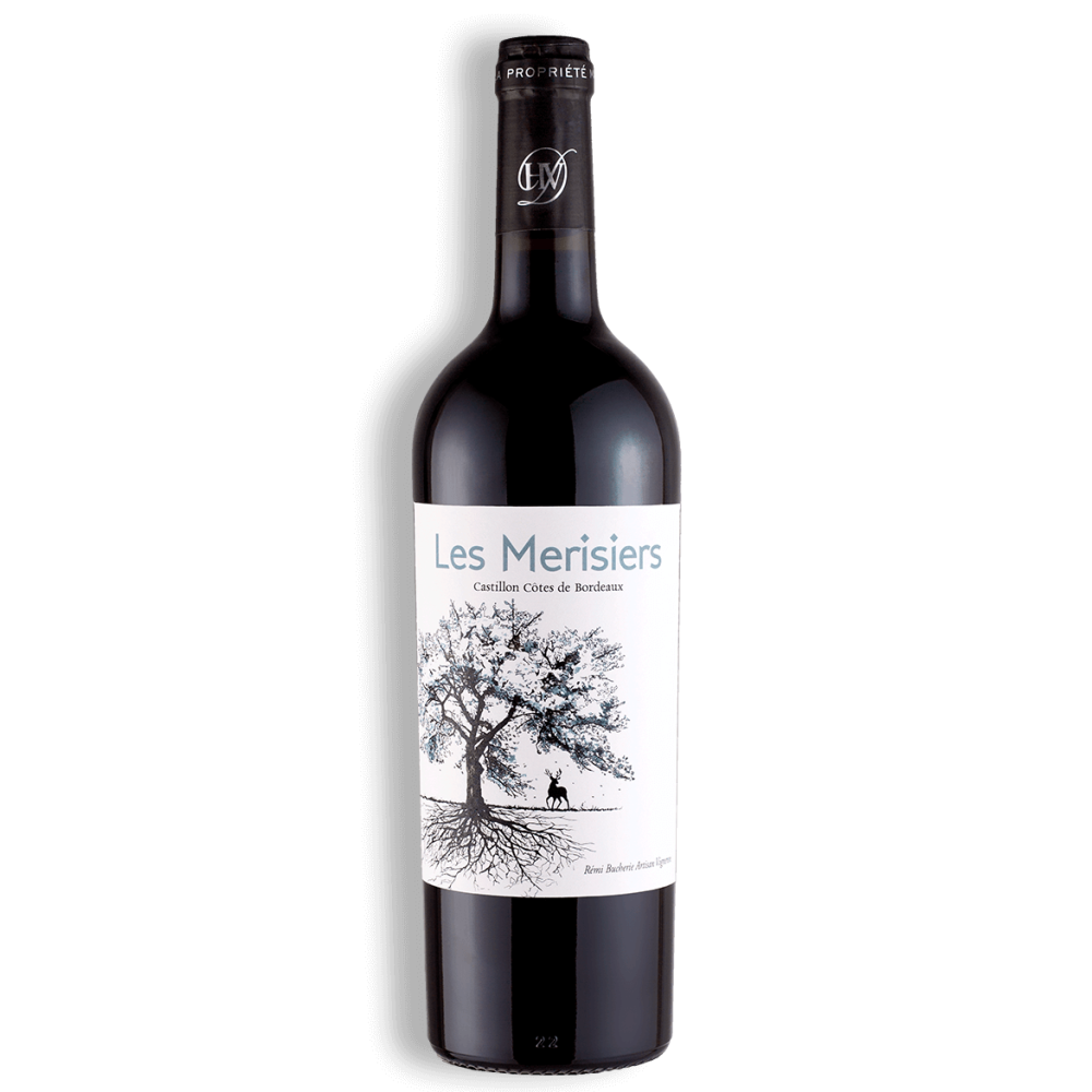 Les Merisiers is een Castillon Côtes de Bordeaux die de kracht en authenticiteit van Merlot weerspiegelt. De wijnstokken, omgeven door wilde kersenbomen, gedijen op ijzerhoudende kleigrond. Deze wijn, geproduceerd volgens biodynamische methoden en gecertificeerd volgens het Demeter-keurmerk, toont respect voor de bodem en de wijnstokken. Een wijn die elegantie, gulheid en intensiteit combineert.